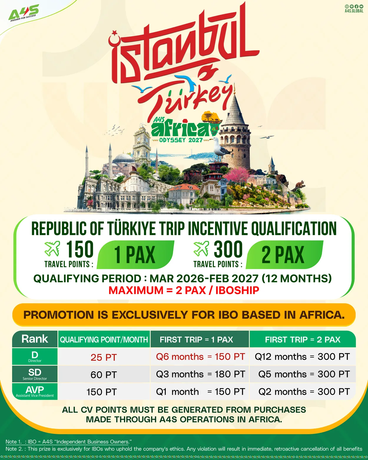 Votre succès est notre priorité absolue. Pour honorer votre engagement et récompenser votre excellence, nous avons l'honneur de lancer le "2027 TRIP INCENTIVE", un rassemblement majeur pour nos leaders, qui partiront à la découverte de la Turquie, terre d'histoire et carrefour du commerce mondial.