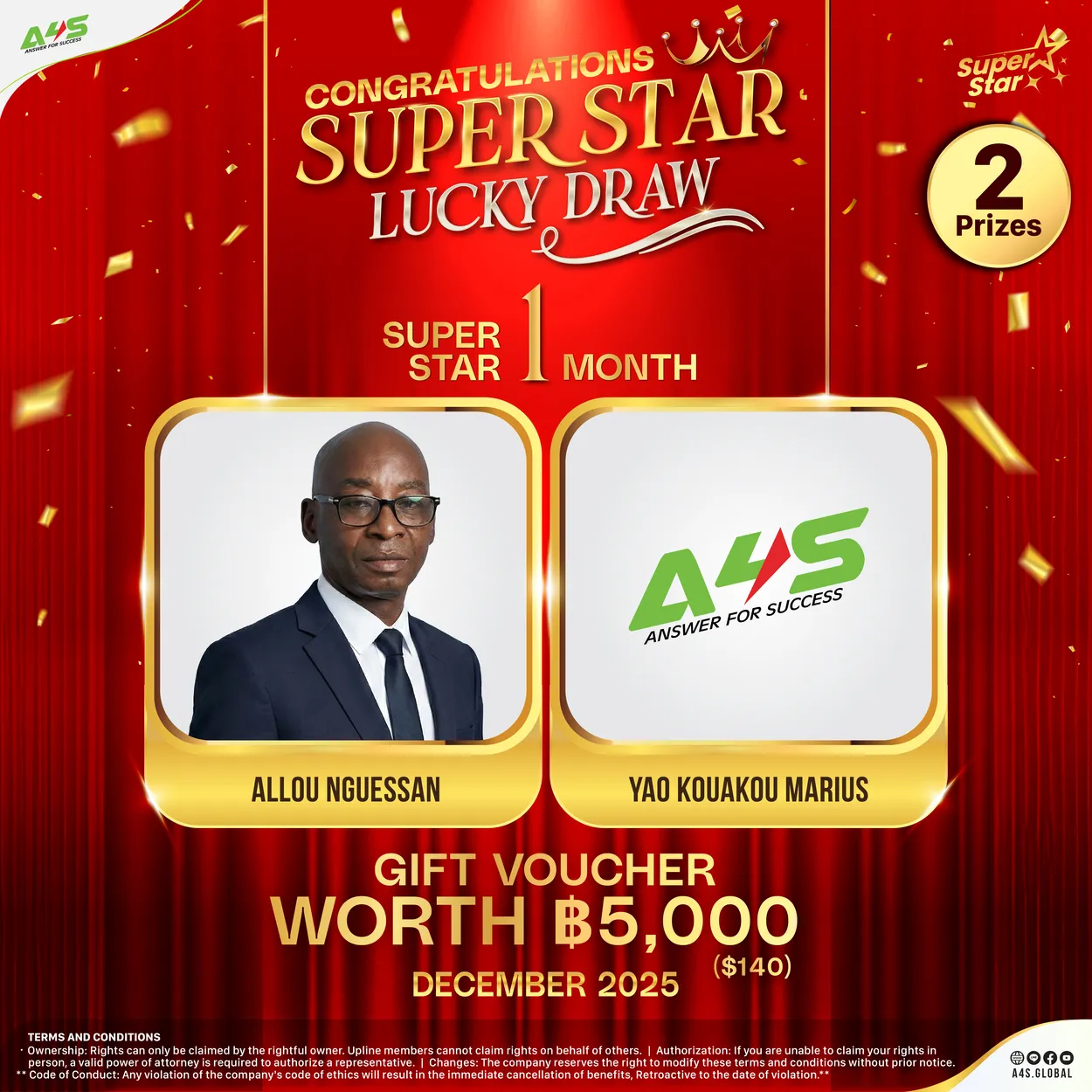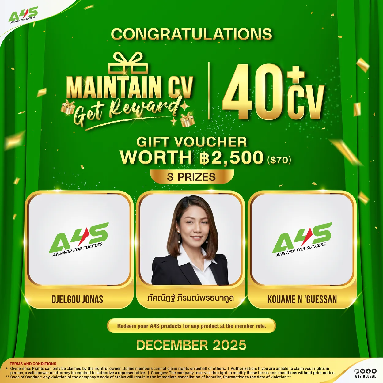 ขอแสดงความยินดีกับผู้ชนะจากกิจกรรม A4S ลุ้นโชคทุกเดือน ประจำเดือน ธันวาคม 2025