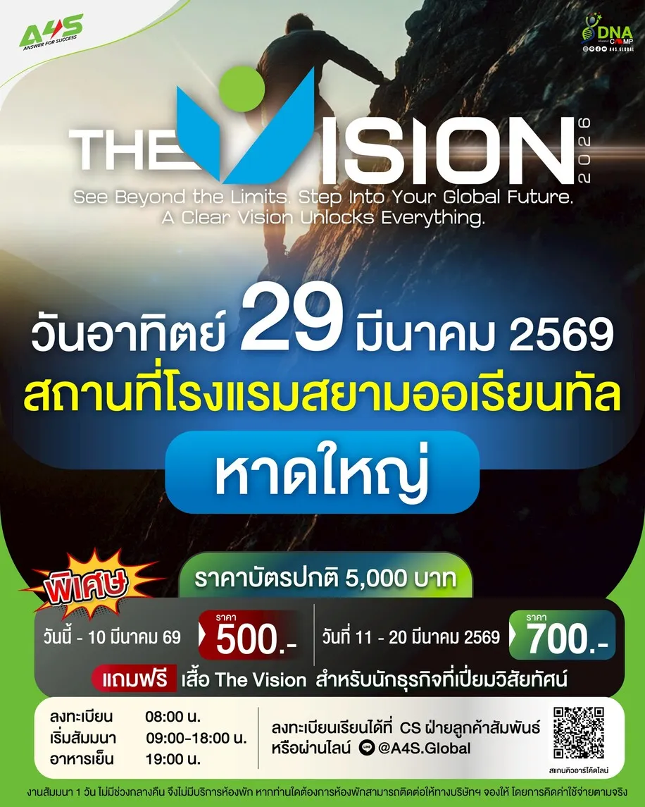 THE VISION 2026 @หาดใหญ่: ปรับวิธีคิด ออกแบบอนาคต เจาะลึกกลยุทธ์สู่ความสำเร็จระดับโลก