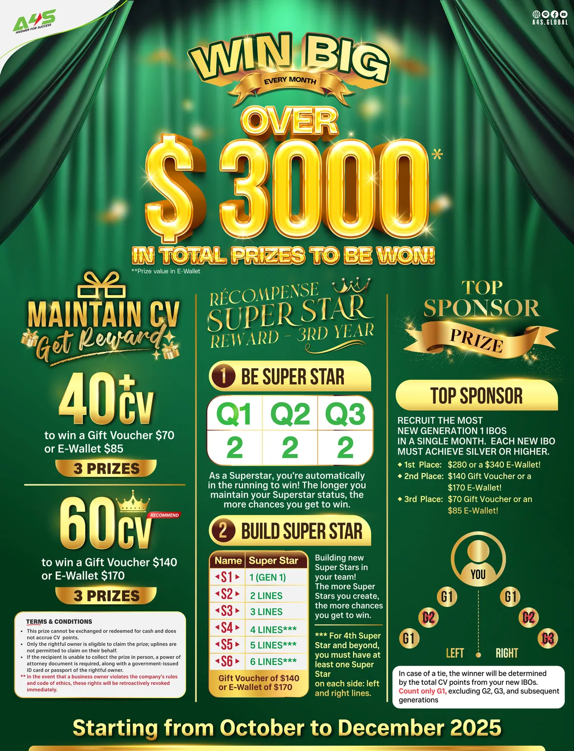 Maintain 60 CV to receive a $140 Gift Voucher or an E-Wallet worth $170.