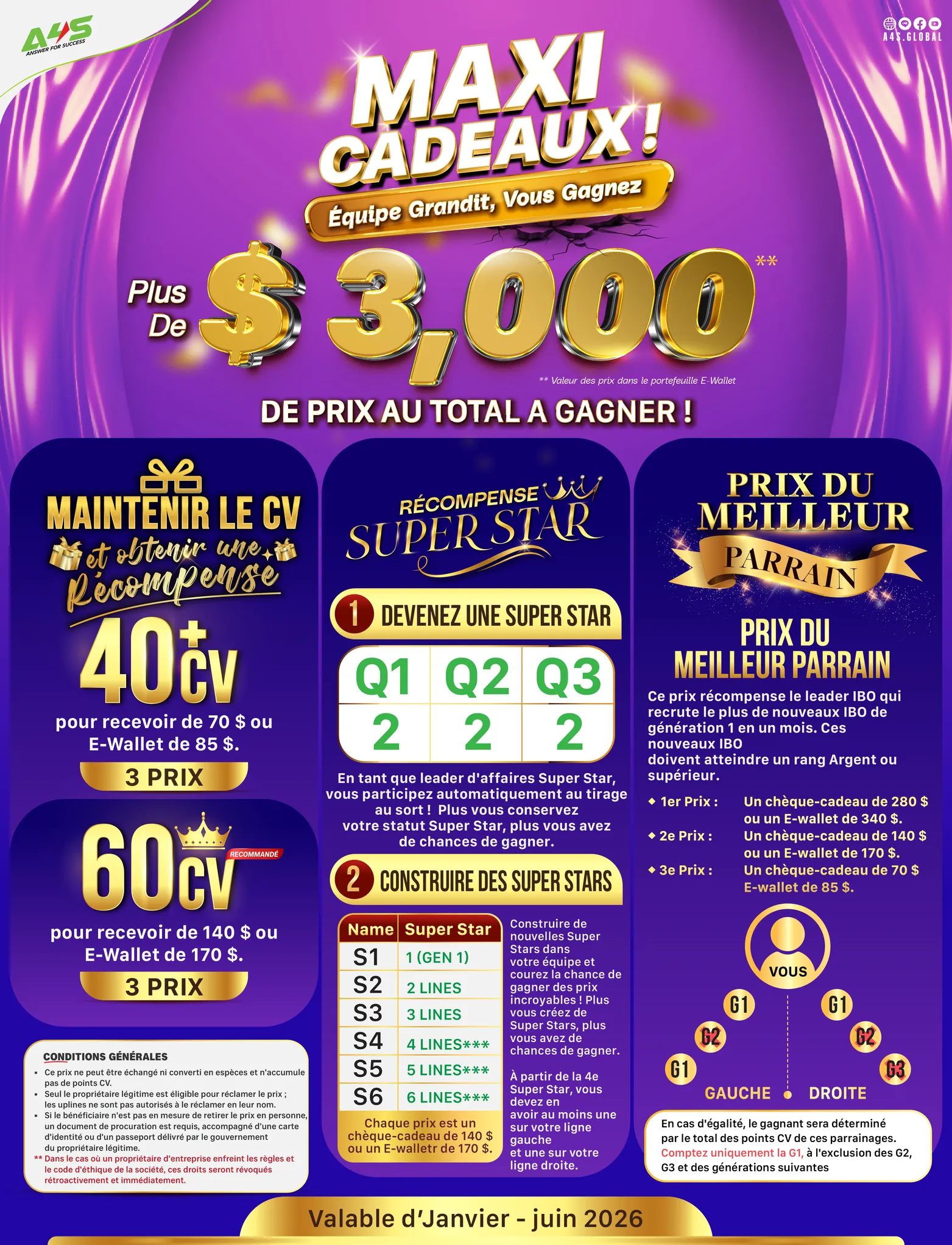 Comment gagner : Pour être éligible et gagner des prix, vous devez acheter des produits pour maintenir un minimum de 40 CV au cours du mois.
